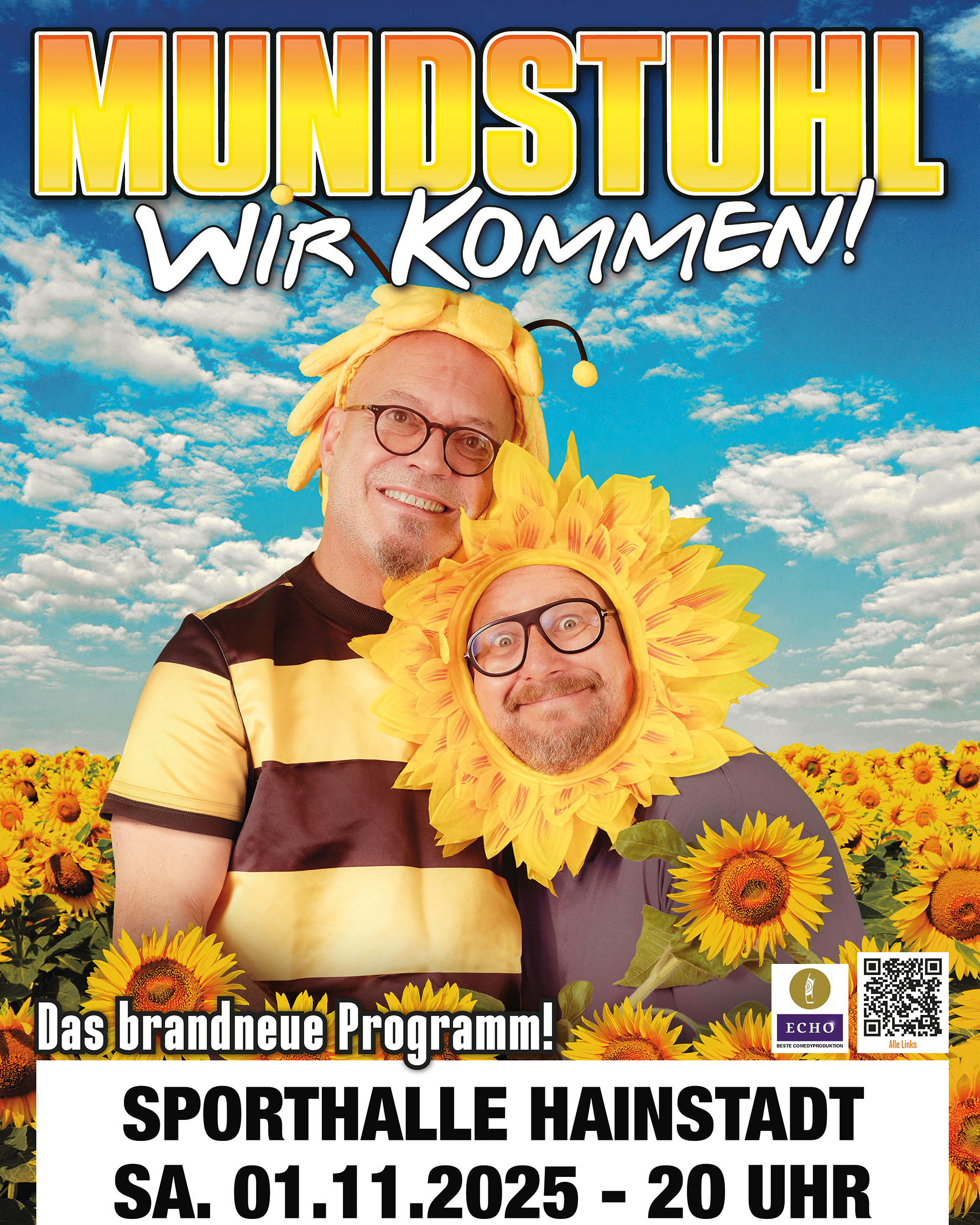Wir haben ein Highlight, dass definitiv eure Lachmuskeln im November strapazieren wird. Das Kult-Comedy-Duo Mundstuhl kommt mit dem brandneuen Programm „Wir kommen“ am 01.11.2025 nach Hainstadt in unsere Sporthalle an der Offenbacher Landstraße.
